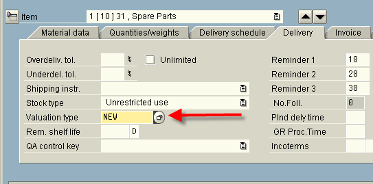 The Ext Mandatory option will force users to enter a valuation type in purchase orders.