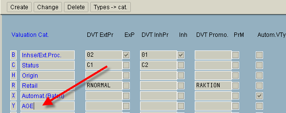 In this example we want to group material in the same plant based on AGE (valuation category). We will have two “groups” (valuation types): OLD and NEW.