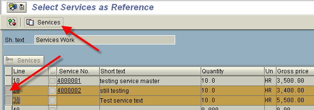 When creating a SES, the planned services can be copied from the original Purchase Order.