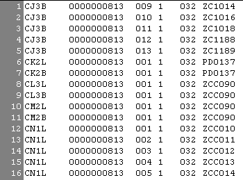 column 2 - Characteristic value - 10 digies - example 0000000810